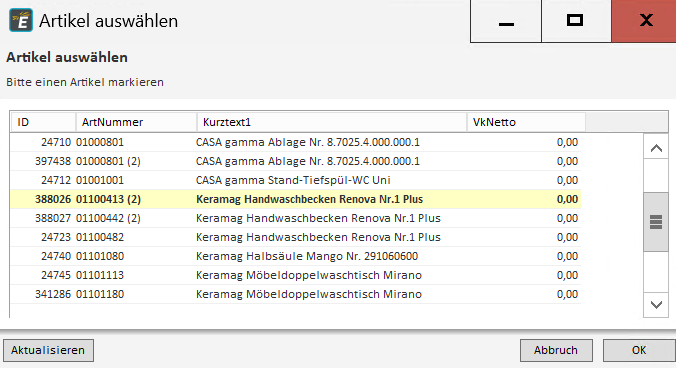 | [Mengen=0] [Löschen] [Custom...] [Aktualisieren] [Abbrechen] [OK] |